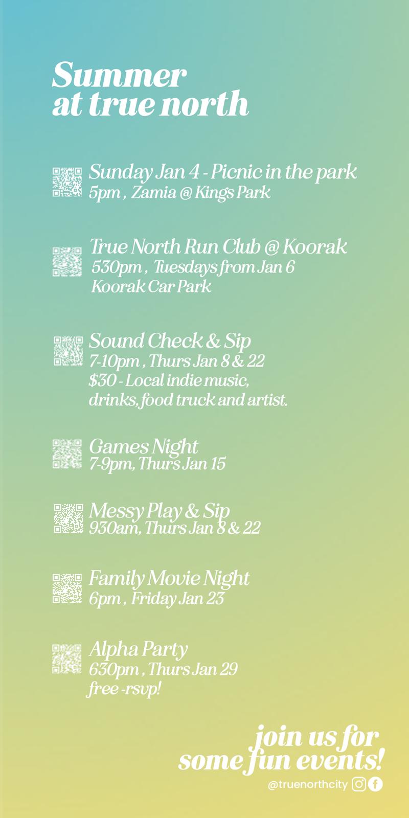 Join us throughout January for a variety of fun, family, holiday activities! From Running Clubs, to picnics, to messy play for the kids or games nights for the adults, there’s something for everyone! So register for an event that suits you, invite a friend and join in the fun!