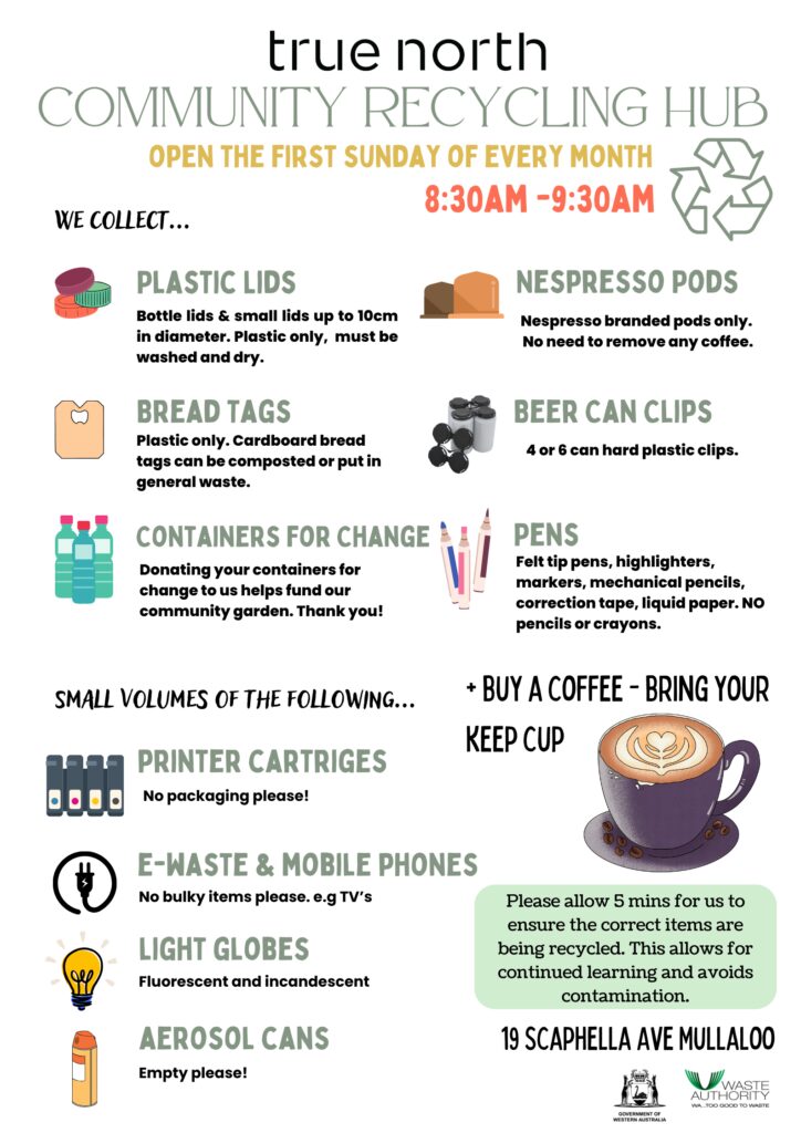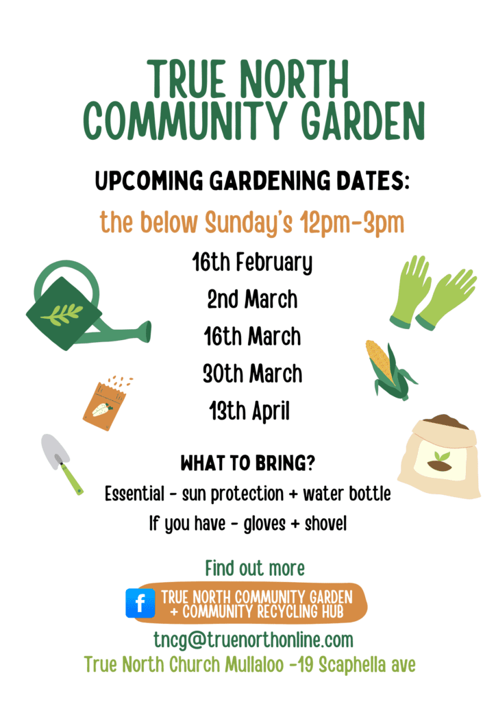 True North’s Sustainability Project has secured a grant of $24,149.57 from the WasteSorted Community Education Grants Program. We have also more recently secured a grant of $9988 through the Community Gardens Grants Program. Over the 12 month period, we will conduct community workshops and on-site demonstrations at True North Church in Mullaloo. Our initiative aims to enhance waste awareness, empower individuals to adopt low-waste practices, and foster a behavioural change within the community.